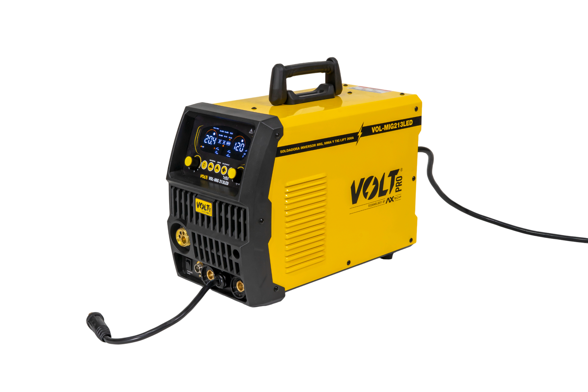 Cuando tu taller exige más, la VOL-MIG213LED responde con fuerza. Diseñada para el profesional que requiere fundir calibres más gruesos, este equipo te entrega 200 Amperes reales y la capacidad de quemar microalambre de hasta 0.045″ (1.2mm). Todo esto controlado por una Pantalla LED Inteligente que simplifica tu trabajo, garantizando soldaduras perfectas tanto en lámina delgada como en perfiles estructurales.
